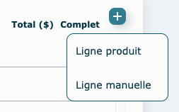 créer une ligne manuelle : remplir la description, quantité et autres informations pertinentes au besoin.