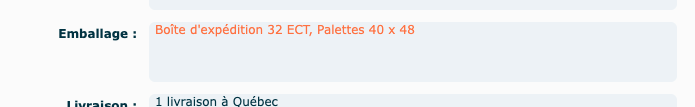 Ici l'emballage est global pour l'item.