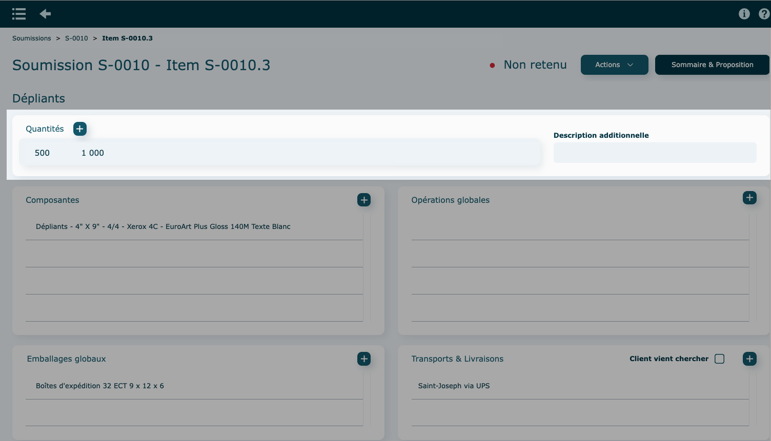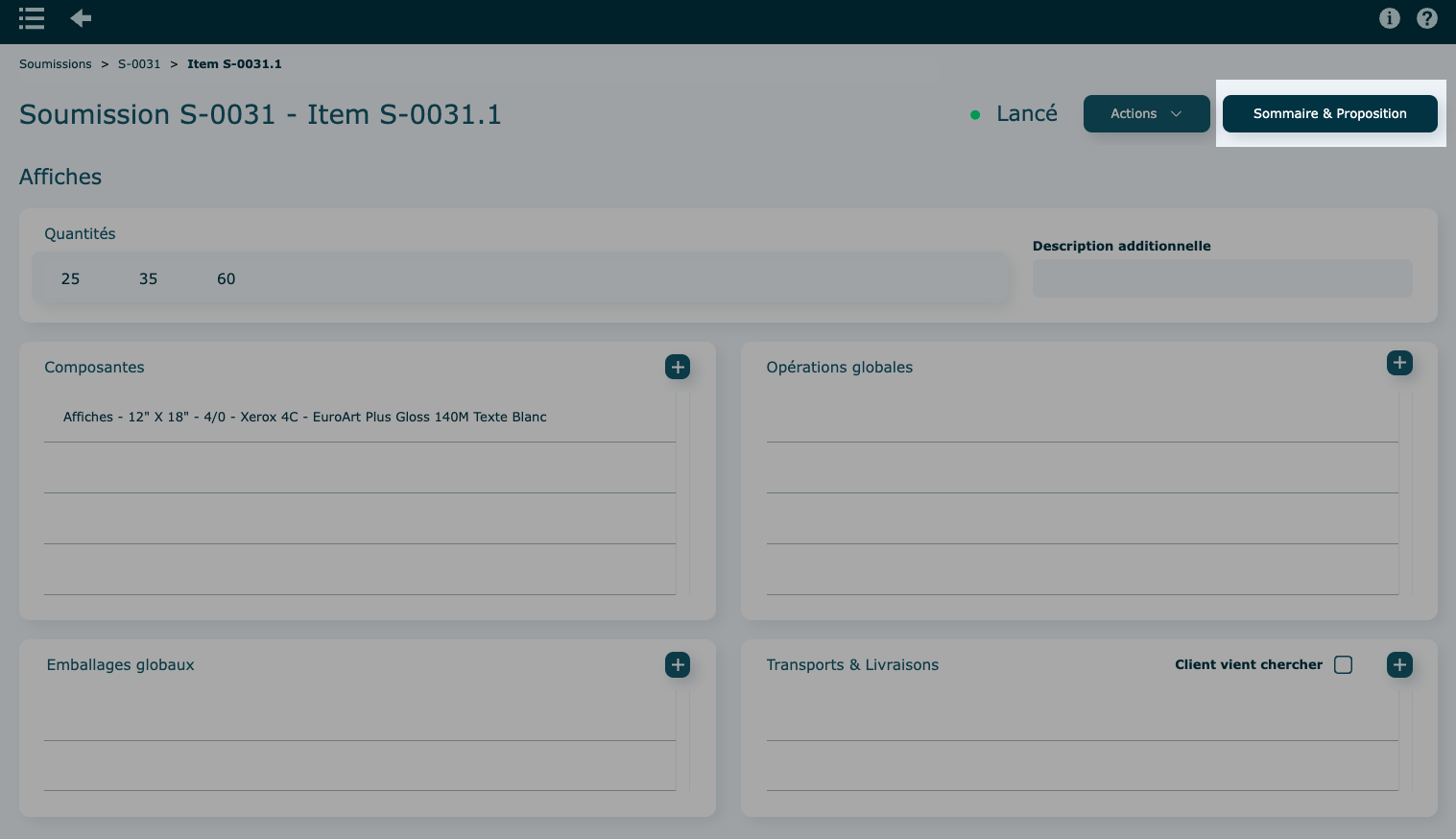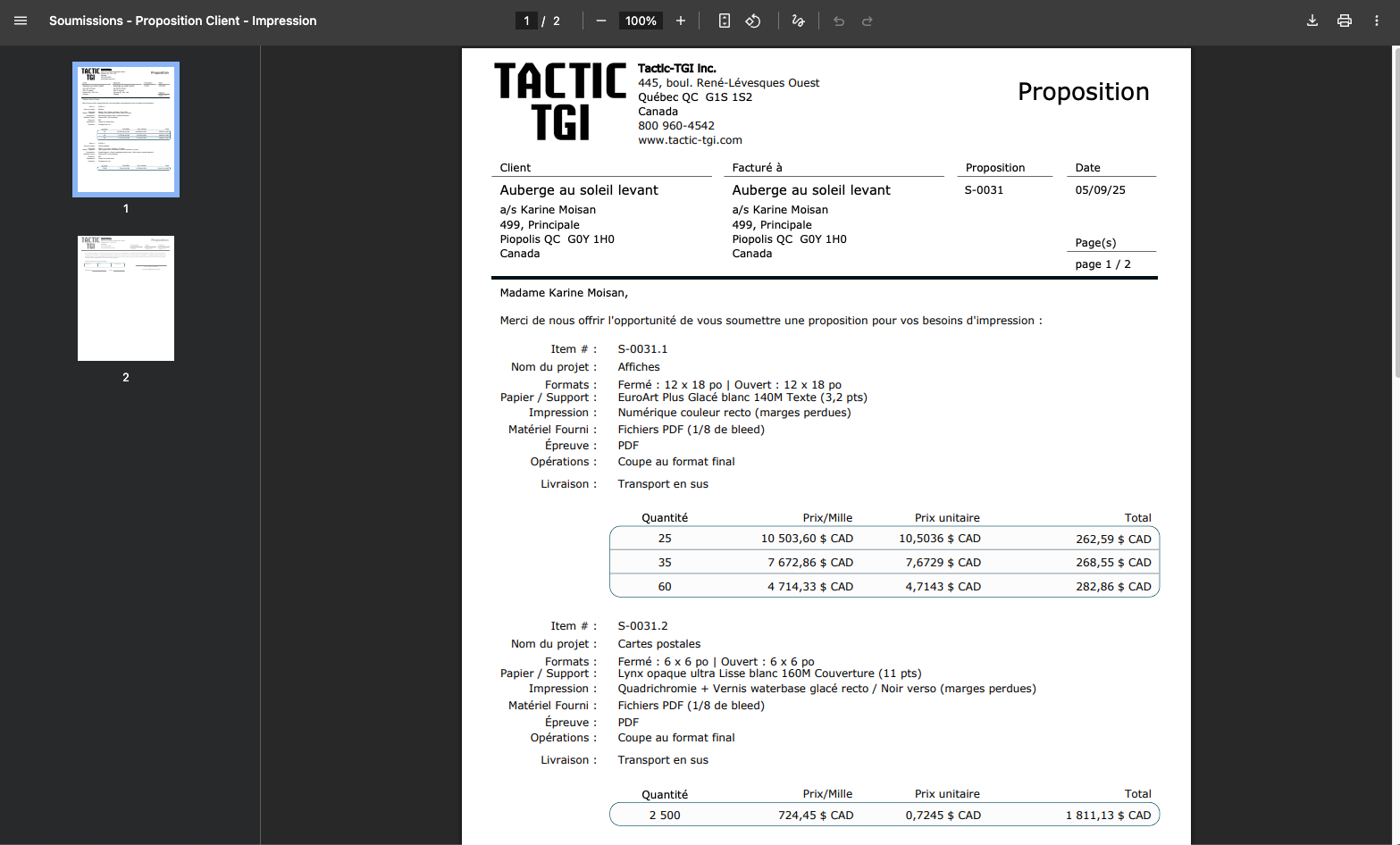 Si la soumission contient plusieurs items, la proposition client les affichera tous.