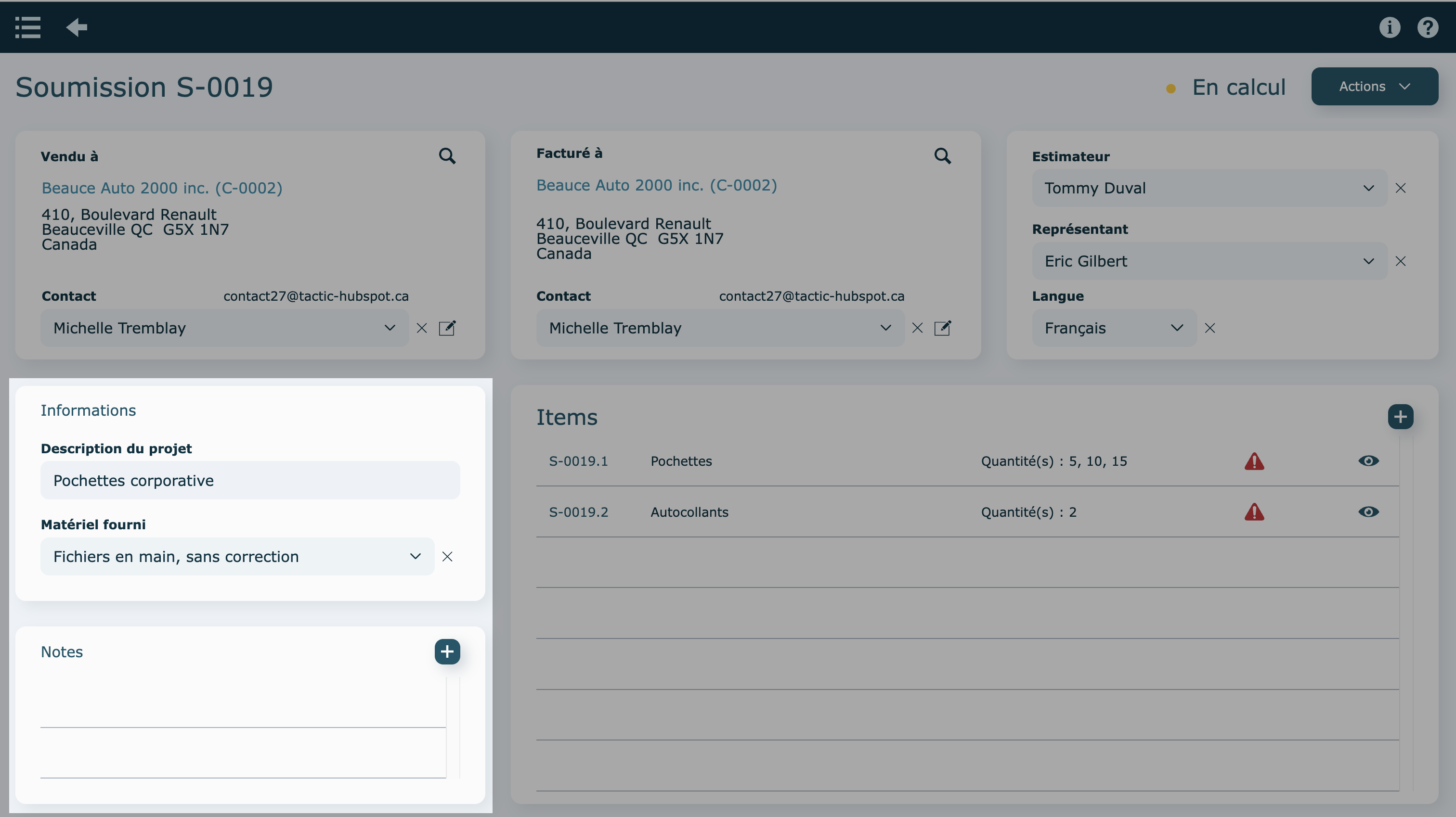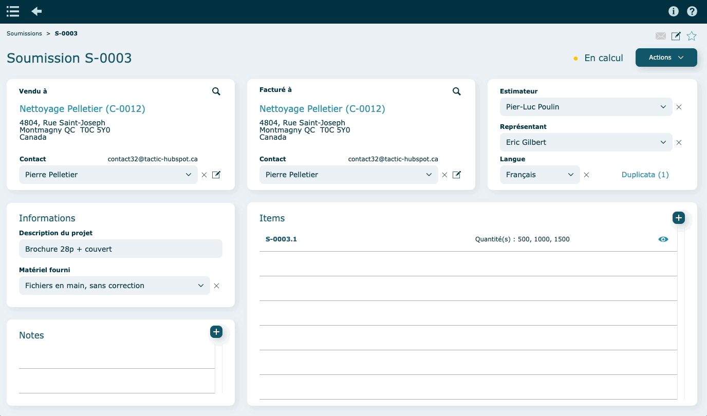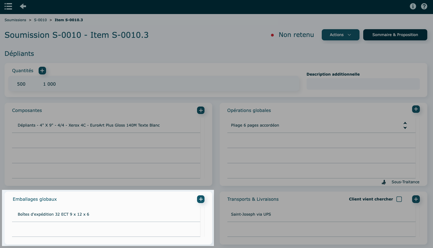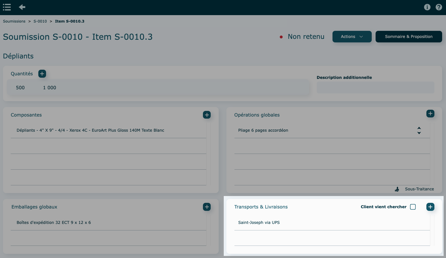 Si la soumission contient plusieurs items, la proposition client les affichera tous.
