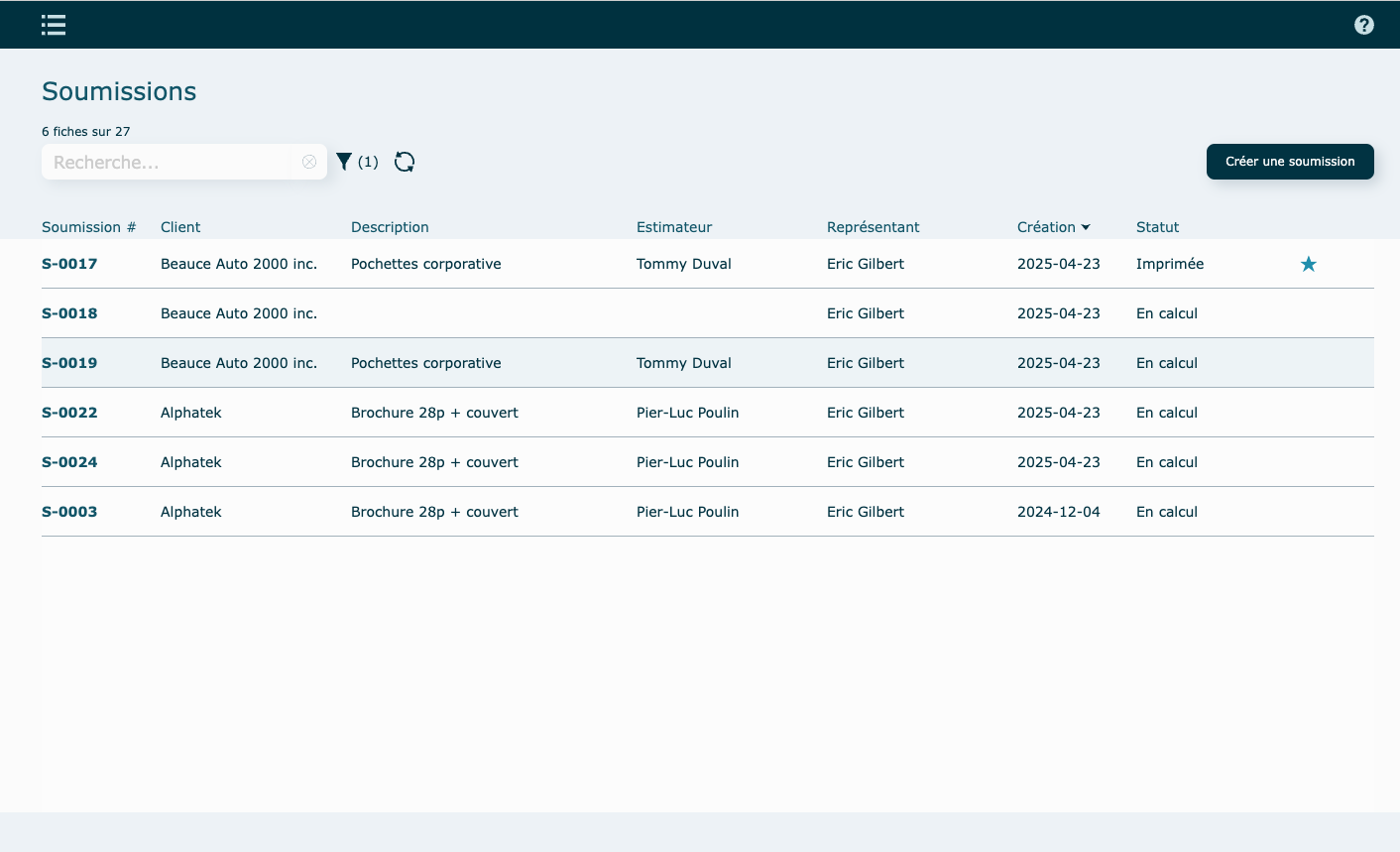 En mode liste, la ligne de soumission sera grisée. Il est possible de réactiver une soumission perdue.