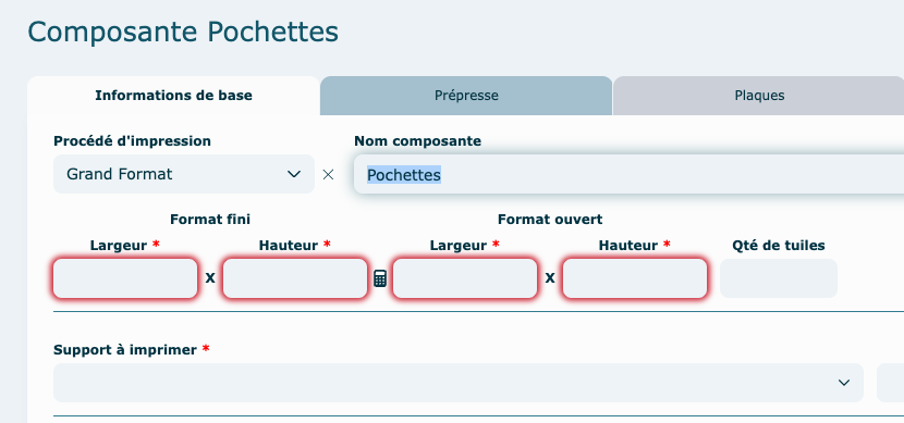 Selon le procédé d'impression choisit, les champs obligatoires sont différents.