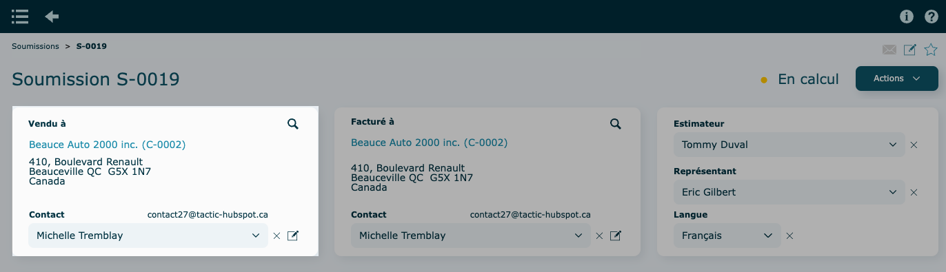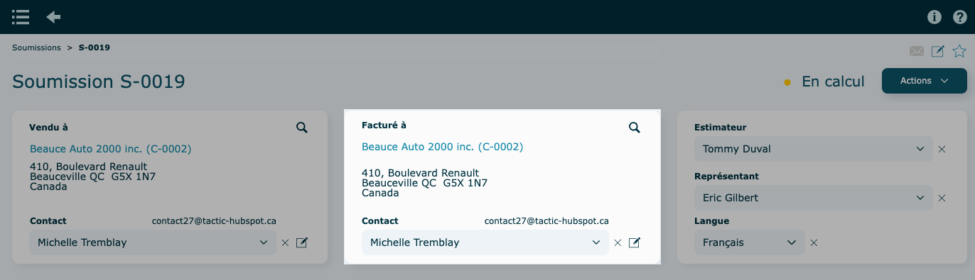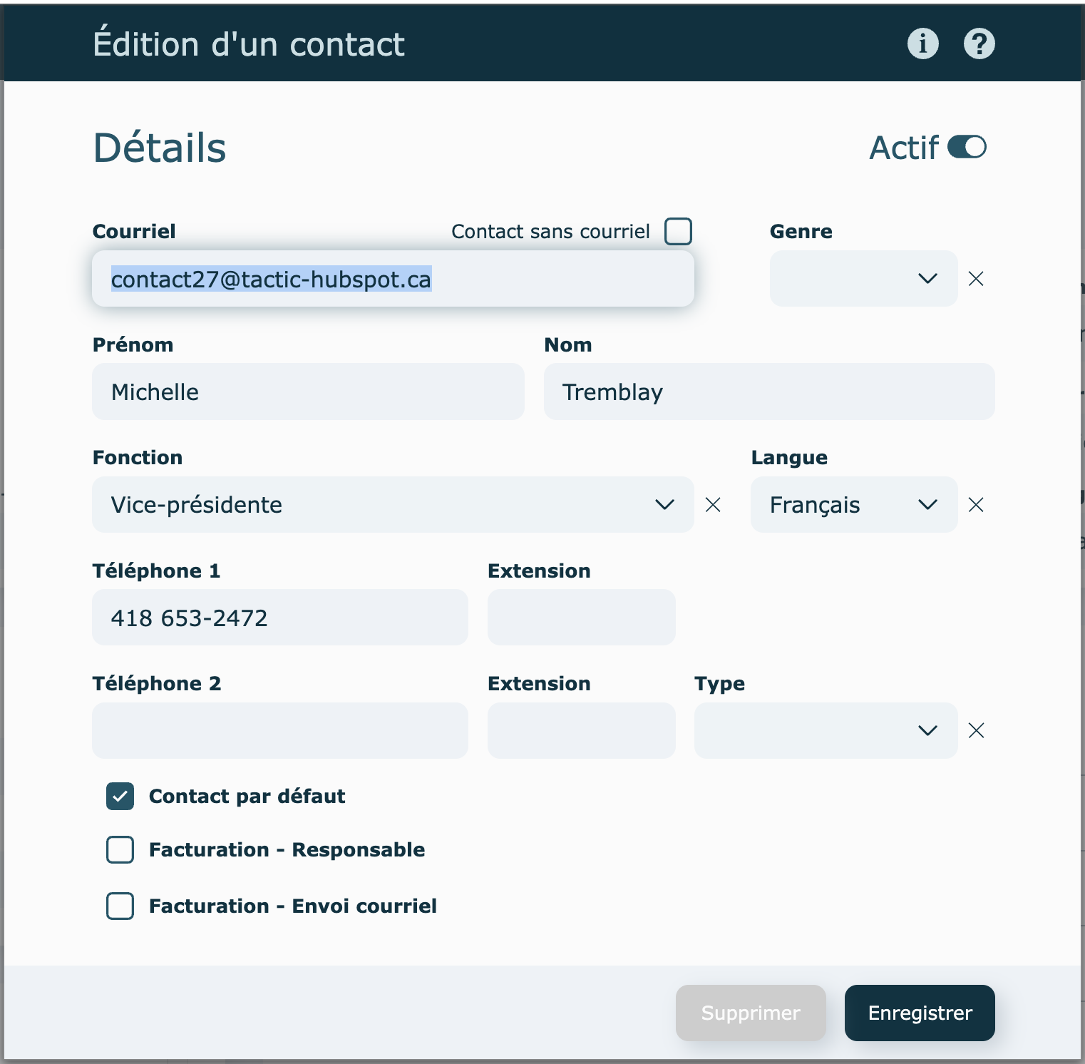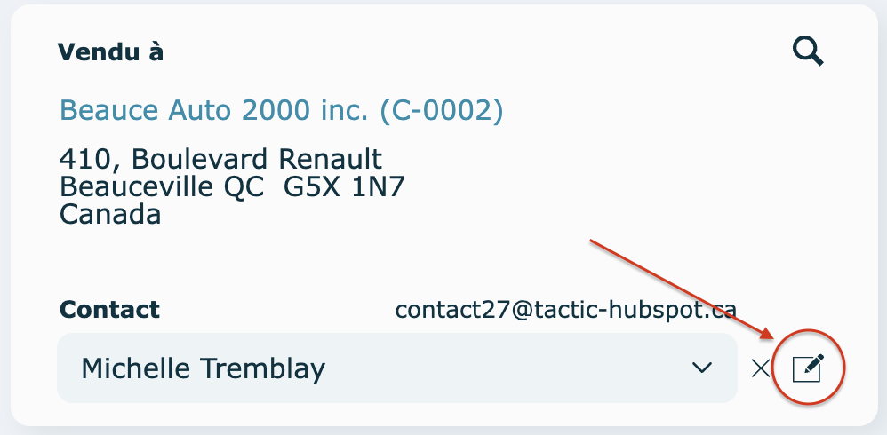 Les changements apportés lors de l'édition du contact seront appliqués dans le système au complet.