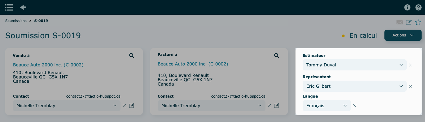 Soumission envoyée au client par courriel.