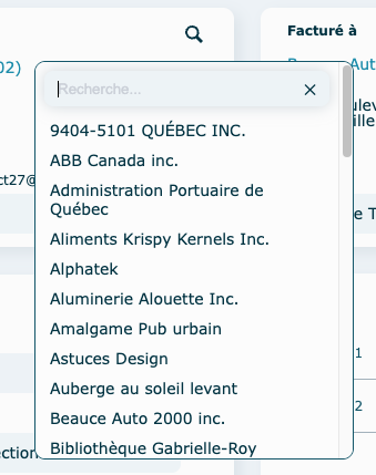Cliquez sur la loupe pour faire une recherche et sélectionnez un client.