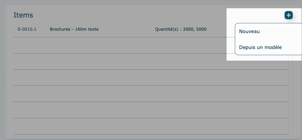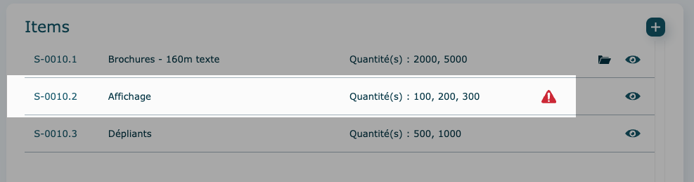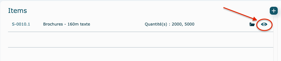 Si l'icône dossier est visible, c'est qu'un dossier de production a été ouvert pour cet item. Cliquez dessus pour l'afficher.