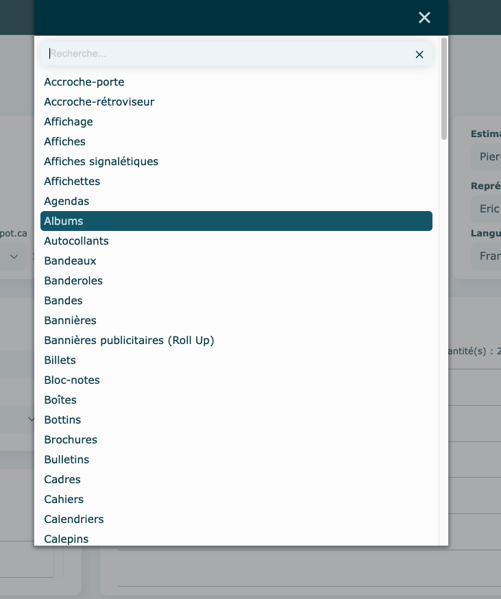 Cliquez sur l'oeil pour que le l'item soit masqué de la proposition client; il deviendra alors rouge. Re-cliquez dessus pour faire afficher l'item sur la proposition.