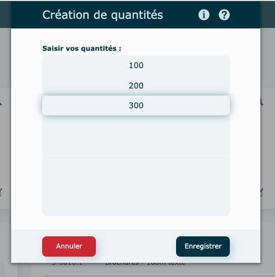 Il est possible de modifier une quantité déjà existante ou d'en ajouter de nouvelles en cliquant sur le