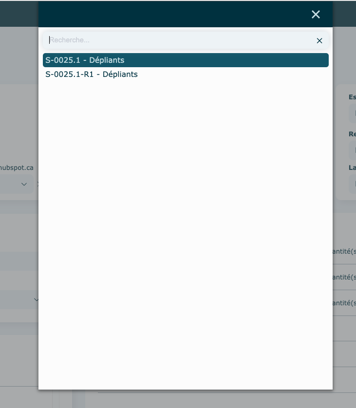 , sélectionnez un produit* et remplir les informations dans la nouvelle fenêtre.