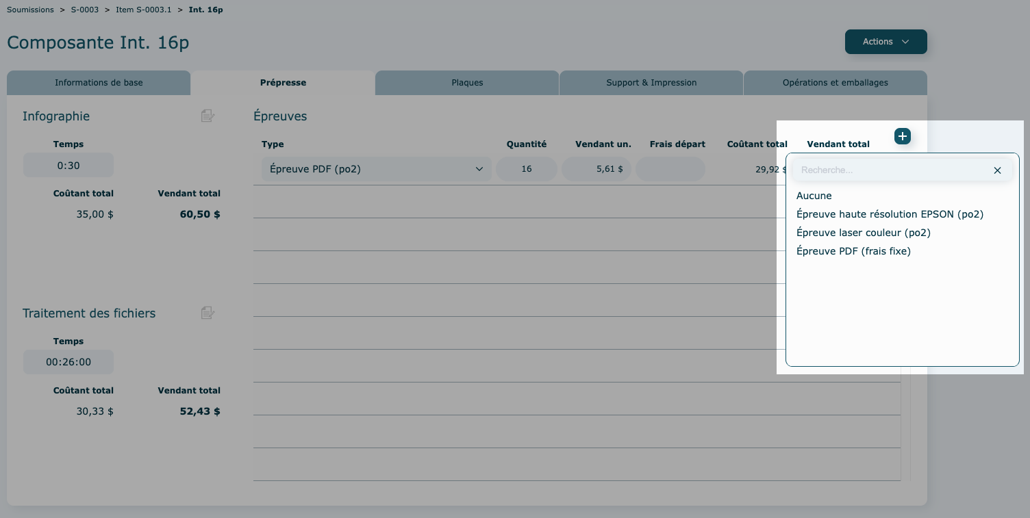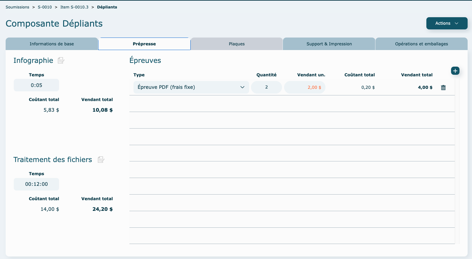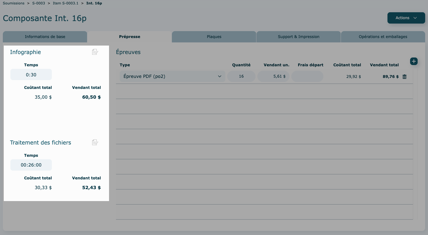La portion Infographie permet d'ajouter du temps additionnel pour le traitement des fichiers.