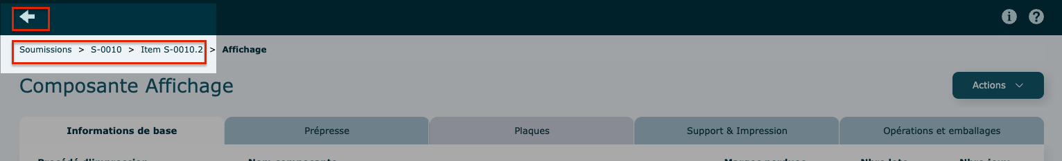 Si la soumission sur laquelle ont se trouve est le résultat d'une duplication, vous pouvez naviguer vers la soumission originale en cliquant sur Duplicata et ensuite, sur la ligne de la soumission.