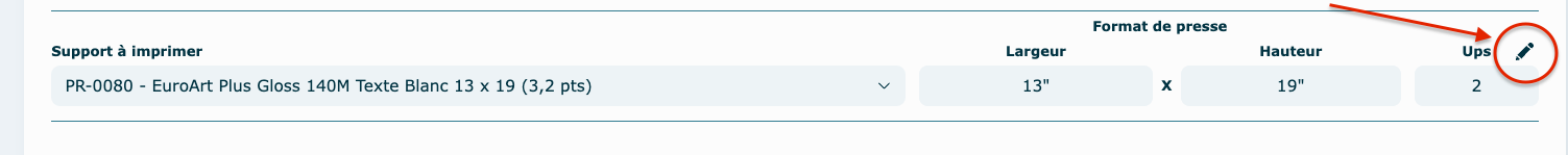 Cliquez sur le crayon situé à côté du champ Ups pour afficher le dessin d'imposition.