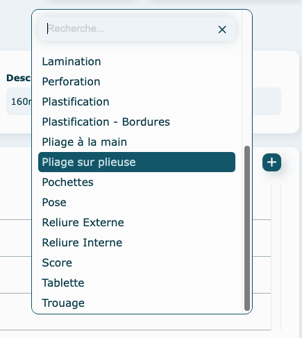 Sélectionnez une famille d'opération. Ici on choisit Pliage sur plieuse.