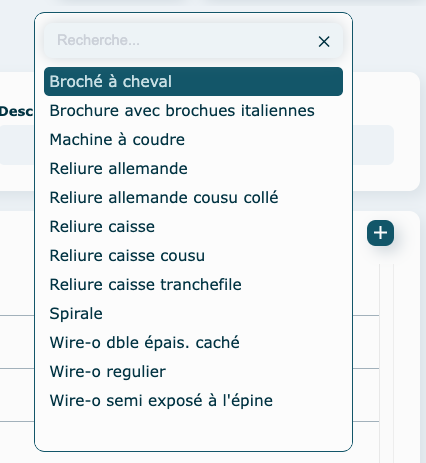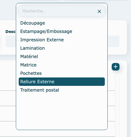 Sélectionnez une famille d'opération. Ici on choisit Reliure Externe.
