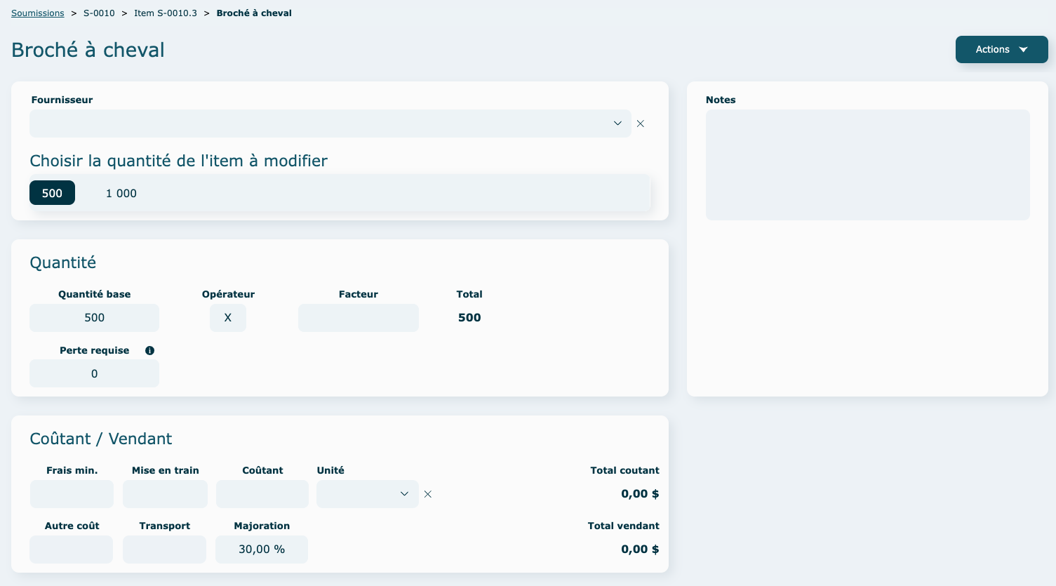 Sortir : il est possible de sortir de l'enregistrement sans le corriger. Par contre, il ne sera pas possible de se rendre au Sommaire et d'envoyer la soumission au client tant qu'il ne sera pas corrigé.