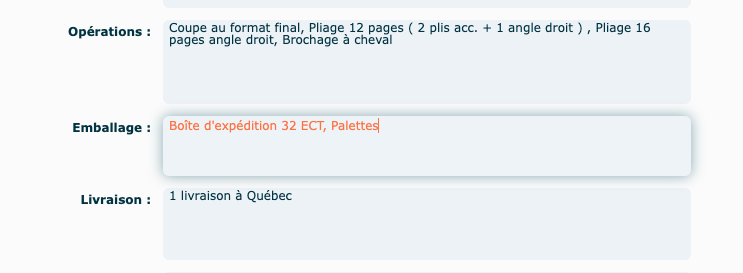 Modifiables ➝ Certaines informations sont modifiables selon la quantité. On peut les modifier dans les onglets où les options de quantités sont visibles dans le haut.