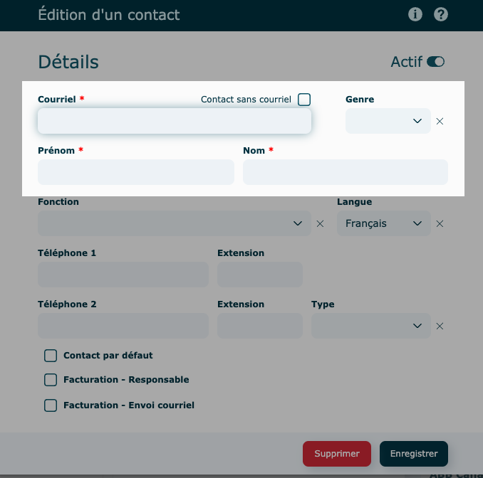 Tous les champs avec une petite étoile rouge doivent être obligatoirement remplis.