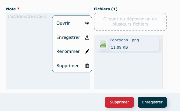 Le trombone indique qu'un fichier a été inséré dans la note et le chiffre en rouge le nombre de fichier(s) joint(s).