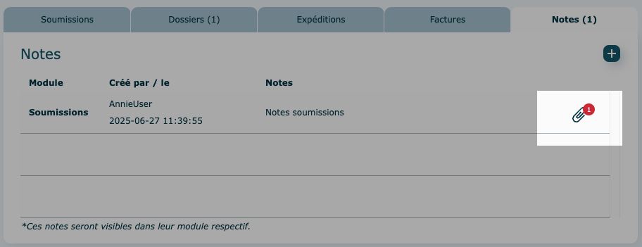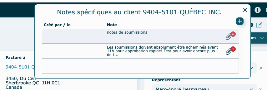Notes provenant de la fiche client ou fournisseur