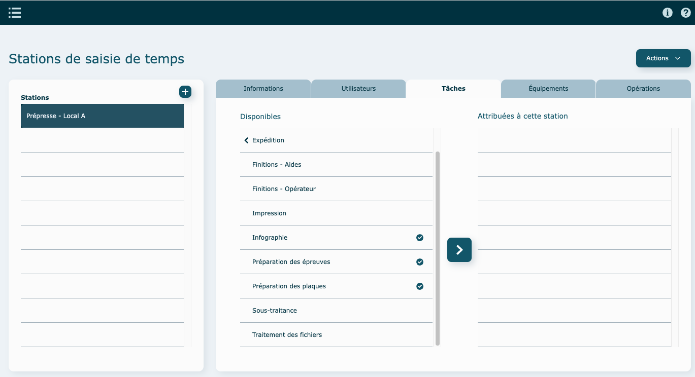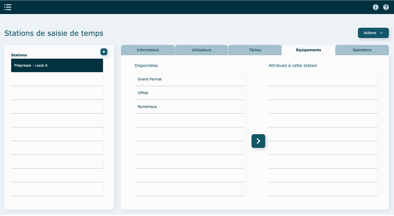Il est donc possible de créer 1 station par département ou par équipement. Exemple : presse, reliure, expédition etc.