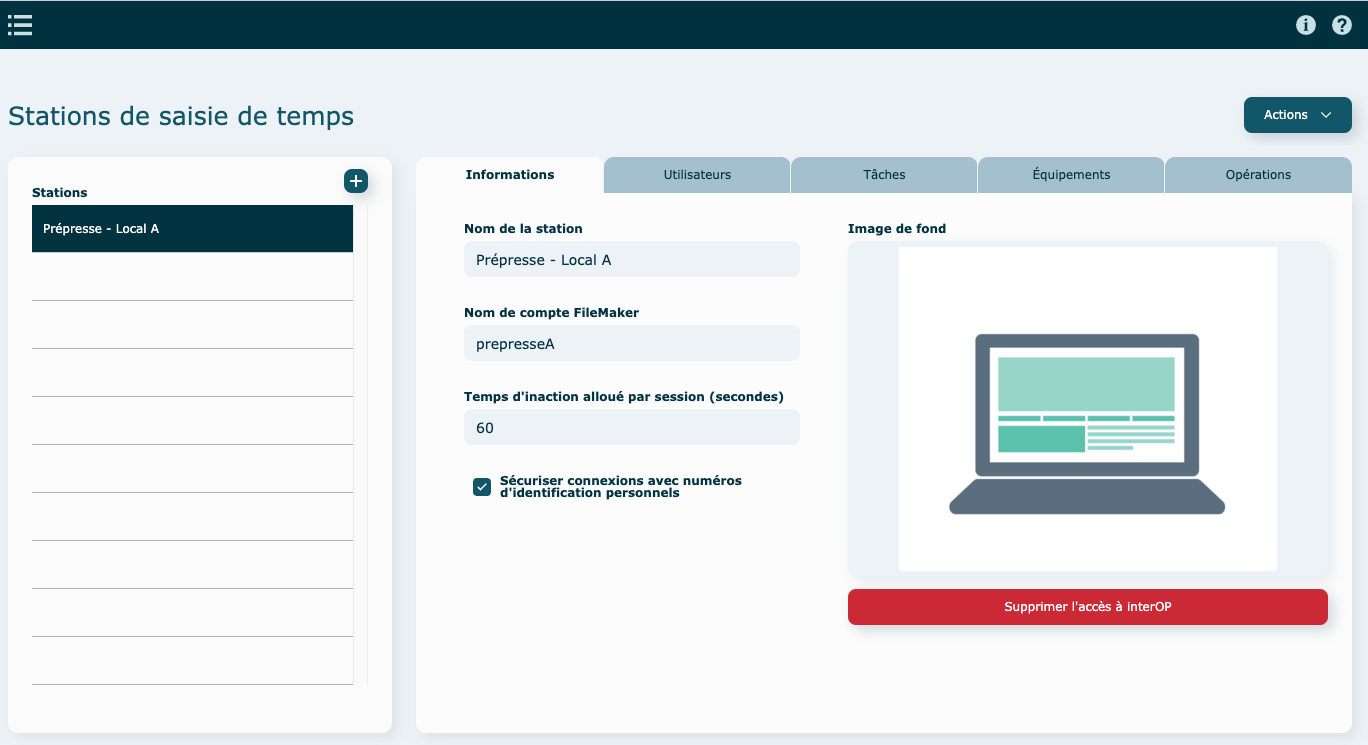 Le nom de la station est seulement un nom d'affichage tandis que le nom de compte Filemaker sera le nom d'utilisateur à utiliser pour se connecter à interOP sur la station.