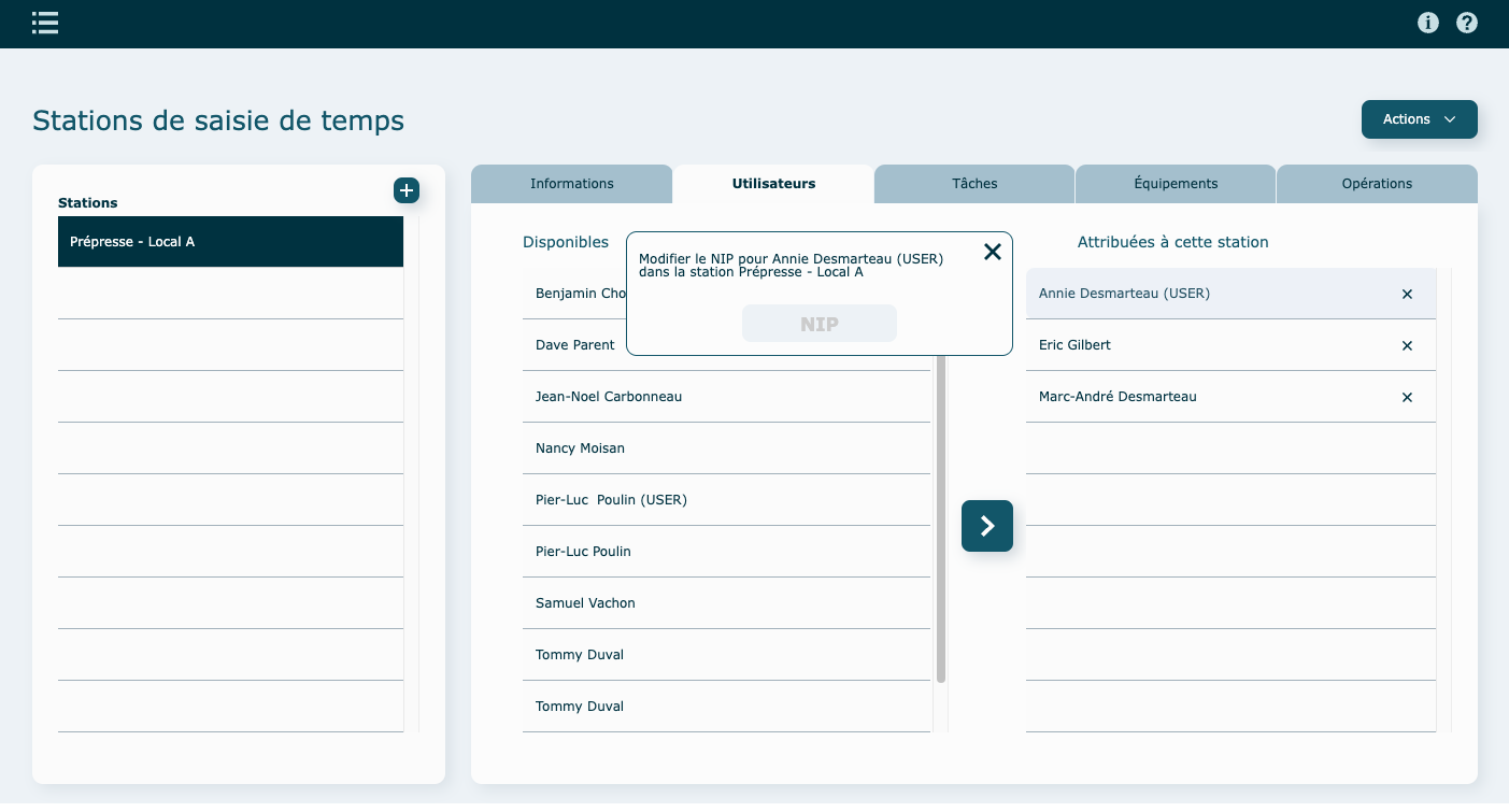 Dans l'interface d'accueil de Saisie de temps, tous les employés assignés à cette station seront visible à droite de l'écran.