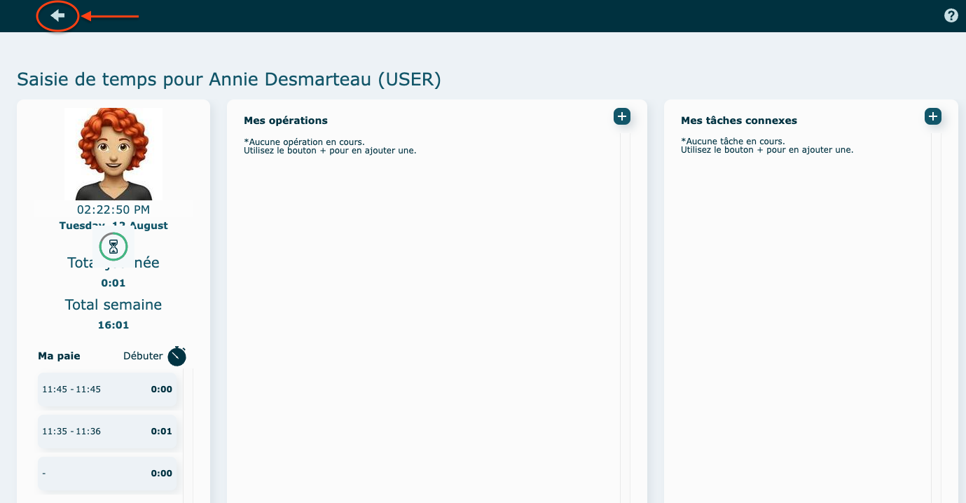 Pour revenir à l'écran d'accueil, cliquez sur la flèche en haut à gauche.